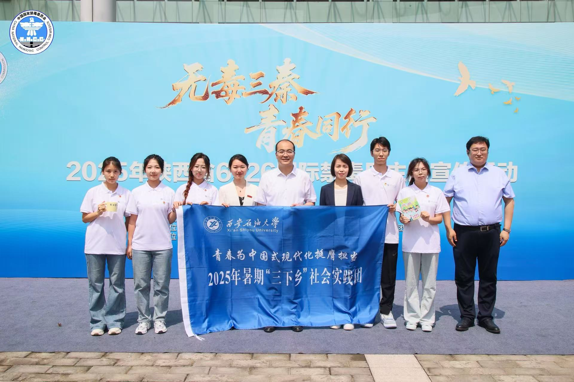 6月26日上午,2025年陕西省“无毒三秦 青春同行”禁毒宣传主题活动在陕西师范大学长安校区举办,由bat365电子工程学院学生组成的“坚定禁毒不松懈”实践团队作为法治禁毒专项实践活动一类资助团队代表参加本次活动。