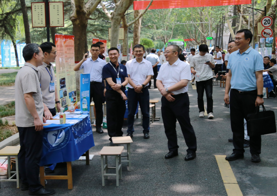 6月26日-28日,学校还组织参加了第十三届陕西教育博览会暨招生咨询会。展览期间,省委教育工委书记、省教育厅厅长王树声、副厅长吴振磊等领导在校长王进富、副校长张君涛的陪同下莅临bat365展位视察指导工作。宣传部、教务处、科研处、研究生院、马克思主义学院、各院(系)专家教授及招生志愿者参加了本次博览会暨招生咨询会。本届博览会以“AI赋能教育发展,推动教育强省建设”为主题。学校在会展中心1号馆设立展厅,以展板、视频、实物等方式全面呈现学校发展历程、办学特色、平台实力、培养模式等,吸引了众多考生、家长前来观看咨询。各院(系)骨干教师、志愿者组成的招生咨询团队现场为考生和家长提供权威解读,对考生志愿填报进行详细指导。