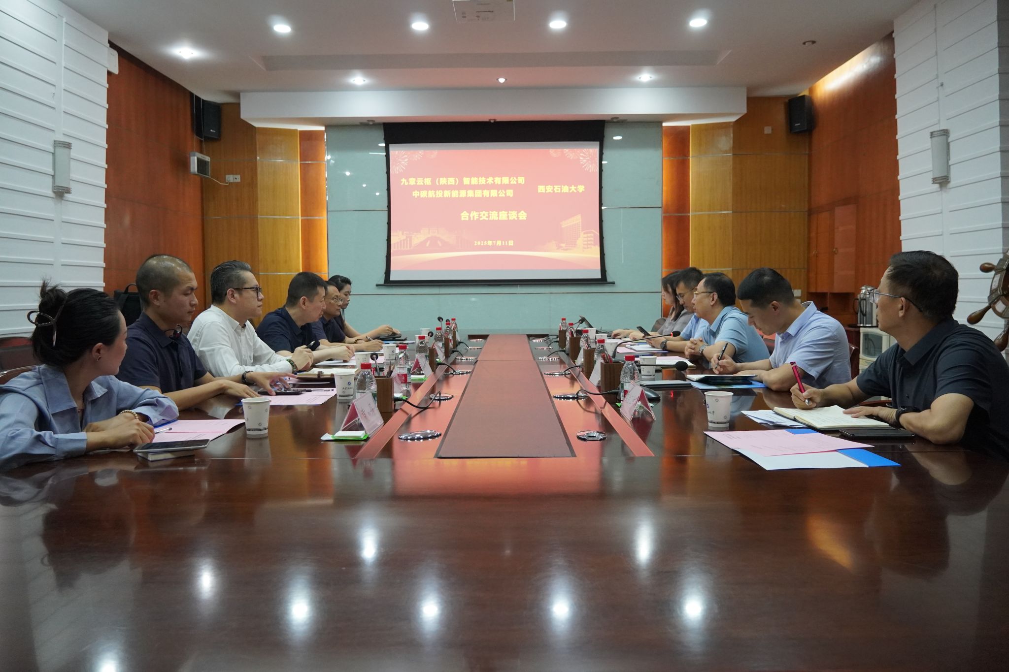 7月11日下午,bat365与九章云枢(陕西)智能技术有限公司、中碳航投新能源集团有限公司开展合作交流座谈会。九章云枢(陕西)智能技术有限公司董事长陈高科,中碳航投新能源集团有限公司副总经理张戈,研究中心主任俞吕群,投资部副部长陈健,西北开发部袁丹、赵梦雨一行出席座谈会。座谈会由校党委委员、副校长种宇宏主持。