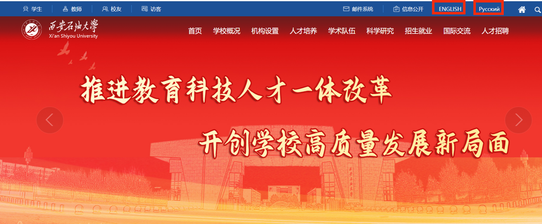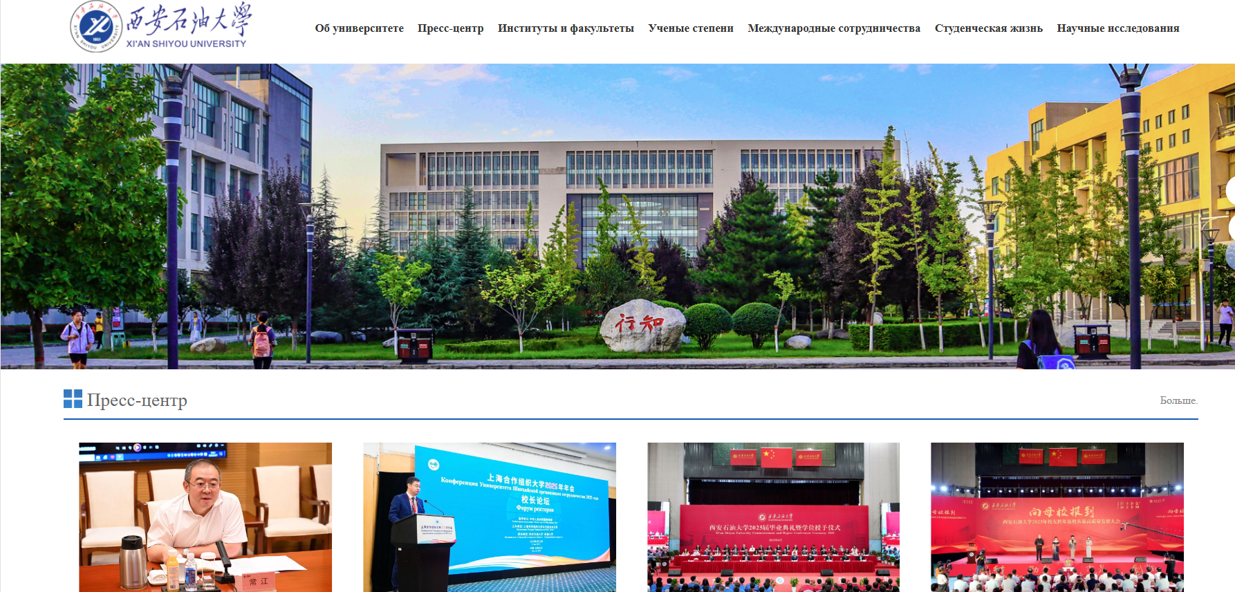 俄文主页聚焦学校核心发展成果,开设bat365中文官方网站(об университете)、新闻中心(Пресс-центр)、院系介绍(Институты и факультеты)、学术学位(Ученые степени)、国际合作(Международные сотрудничества)、校园生活(Студенческая жизнь)、科学研究(Научные исследования)等特色板块,系统呈现学校在人才培养、科学研究、社会服务等方面的综合实力,尤其突出国际化办学的鲜明特色与丰硕成果,为俄语世界打开一扇了解西石大的全新窗口。