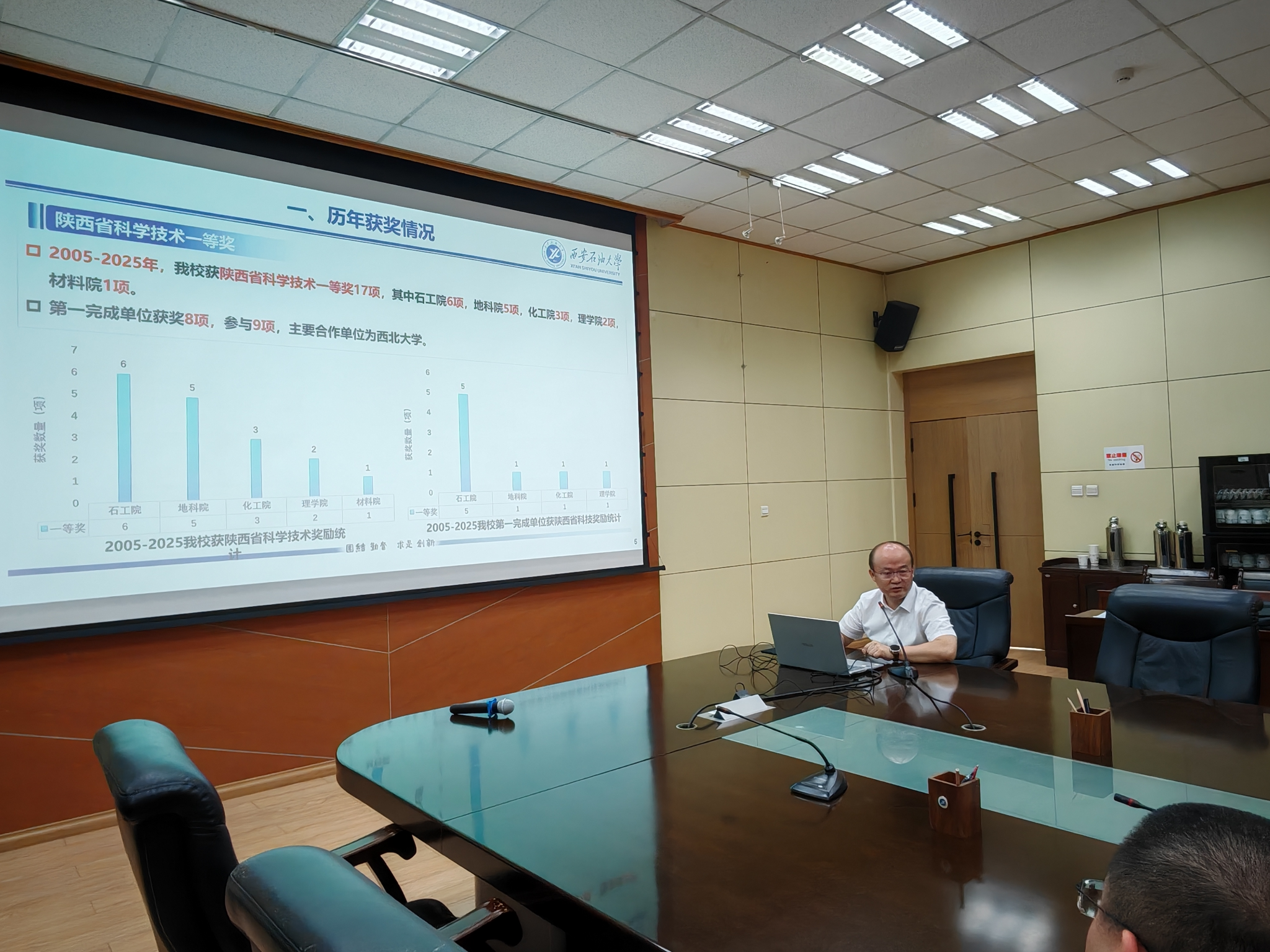 会上,高辉详细分析了近二十年学校在陕西省科学技术奖评选中的整体表现,包括各学院获奖分布、不同等级奖项斩获情况。他围绕现有科研成果储备与2025年申报规划,梳理了国家级、省部级科研项目及重大横向项目的成果转化潜力,介绍了拟申报项目整体布局,并就申报材料规范、时间节点把控等工作做了具体的安排和部署。