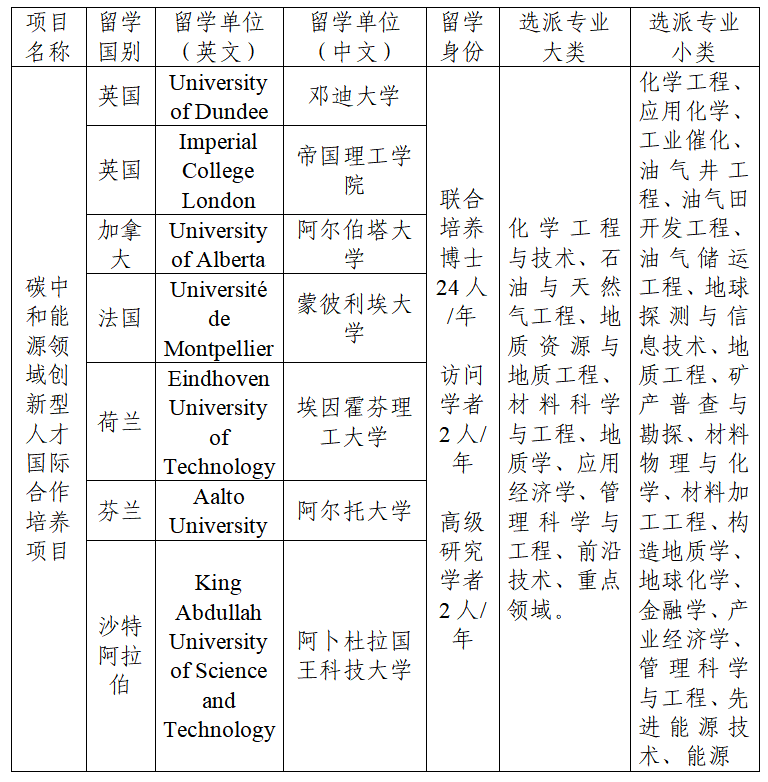 “碳中和能源领域创新型人才国际合作培养项目”由国内13所能源相关高校联合成立能源高校协作组共同开展,与7个外方单位合作选拔国内相关高校优秀博士研究生和青年学者进行联合培养和访问交流,旨在集中各高校在碳中和能源领域优势力量,培养面向碳中和战略目标的能源交叉学科领域创新领军人才。