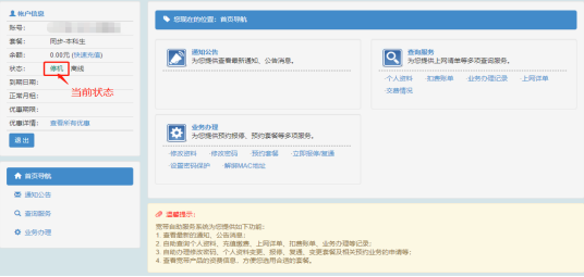 4.因缴费或复通后,系统会立即执行账号当前的套餐标准,因此,状态为“停机”的用户,一定要先预约成功再缴费或复通,状态为“正常”的用户,一定要在新套餐生效后再行缴费,以免引起争议。