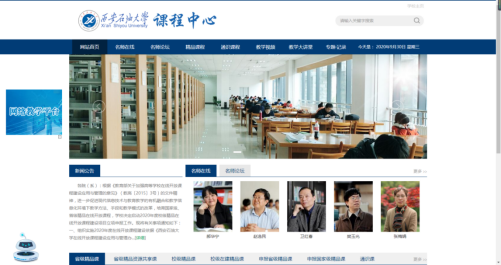 课程中心网站包含:名师在线、名师论坛、精品课程、通识课程、教学视频、教学大讲堂和专题纪录等栏目。该网站现已提供12个教学名师的课程、154个精品课程与通识课程,以及1977个课程相关视频。同时,课程中心网站为师生提供综合检索功能,以方便师生查询与课程相关的信息。