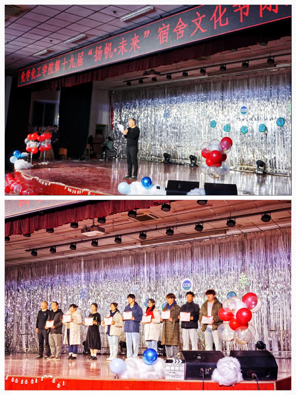 12月20日晚,化学化工学院第十九届“扬帆·未来”宿舍文化节闭幕式暨表彰大会在鄠邑校区腾辉活动中心顺利举行。机械工程学院党委书记蔡建文、化学化工学院党委书记司马文龙、院长王文珍、党委副书记祁帆、学生工作办公室主任周钰桐、全体辅导员老师及三百余名学生代表参加本次活动。
