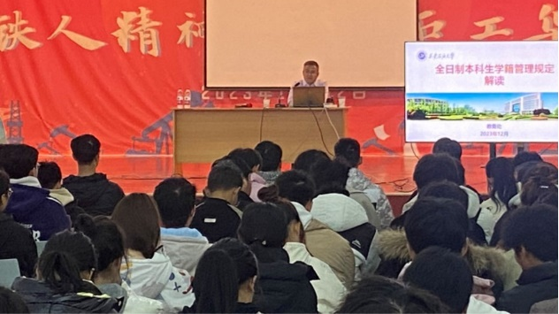 为加强学生对学籍管理政策的认识和理解,12月13日下午,材料科学与工程学院在鄠邑校区腾辉大学生活动中心举办全日制本科生学籍管理规定解读报告会。报告会由教务处副处长马加传主讲,学院2023级全体本科生参加,辅导员陈庆龙主持报告会。