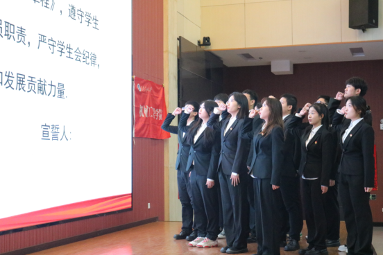 院团委书记王璟老师对本次大会致开幕词,并向校团委及各兄弟院(系)一直以来对学院团学工作的支持和帮助表示衷心感谢,希望各位团学干部,一要团学工作要紧紧围绕学校中心工作来开展,并在服务学校大局中更好地发挥作用,二要不断提升青年团员的思想道德素质,努力打造一支使同学满意,老师认可的高素质学生干部队伍,努力开创学院团学工作的新局面,三要进一步加强自身建设,努力提升团学干部的工作能力。