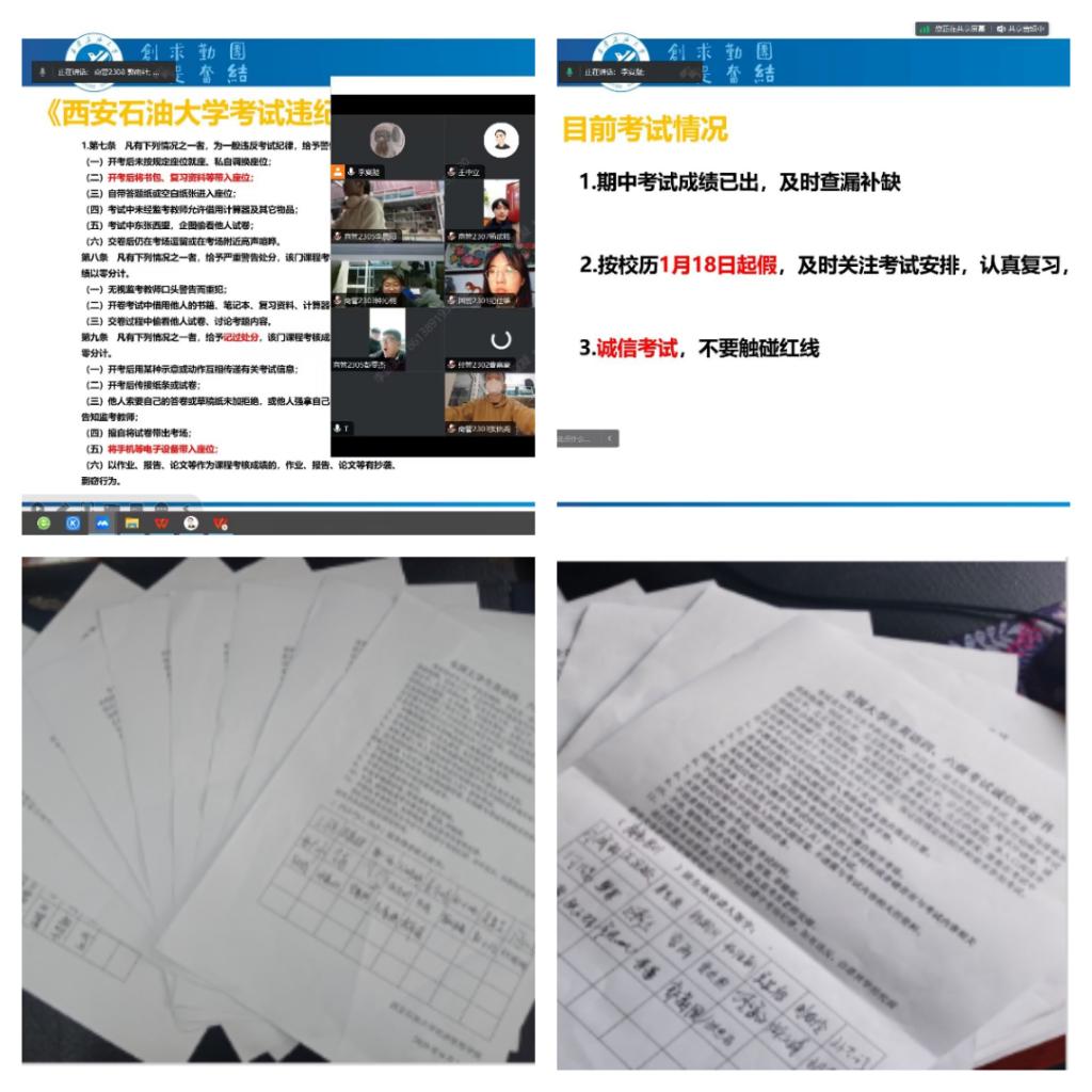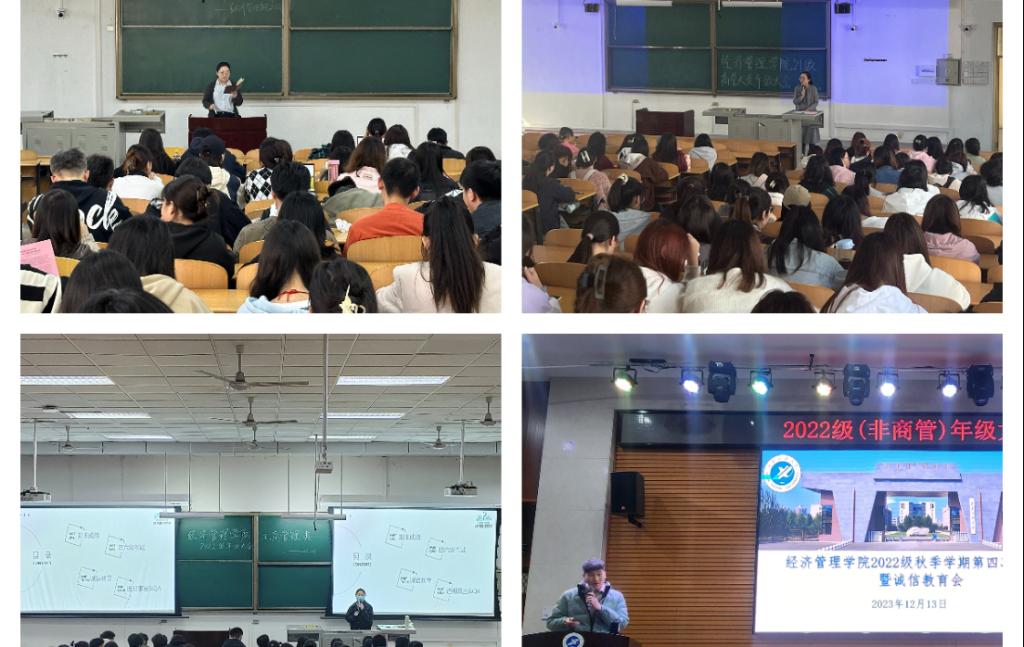为了进一步加强和促进新时代高校思想政治工作,弘扬新时代学风建设精神,提高同学们的诚信考试意识,切实加强学风建设,严肃考风考纪,营造风清气正的考试环境。12月11—15日,经济管理学院开展了“筑牢诚信基石,营造良好考风”考试诚信教育主题活动。会议由各年级辅导员主持,各年级全体同学参加。
