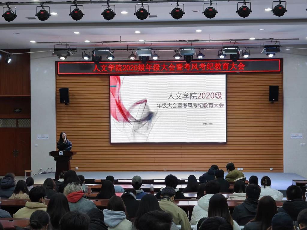 为进一步推进本年级就业工作,严肃考风考纪,营造良好的考试氛围,人文学院于12月14日在经管人文楼118召开了2020级年级大会暨考风考纪教育大会,会议由辅导员樊煜主持,2020级全体本科生参加。