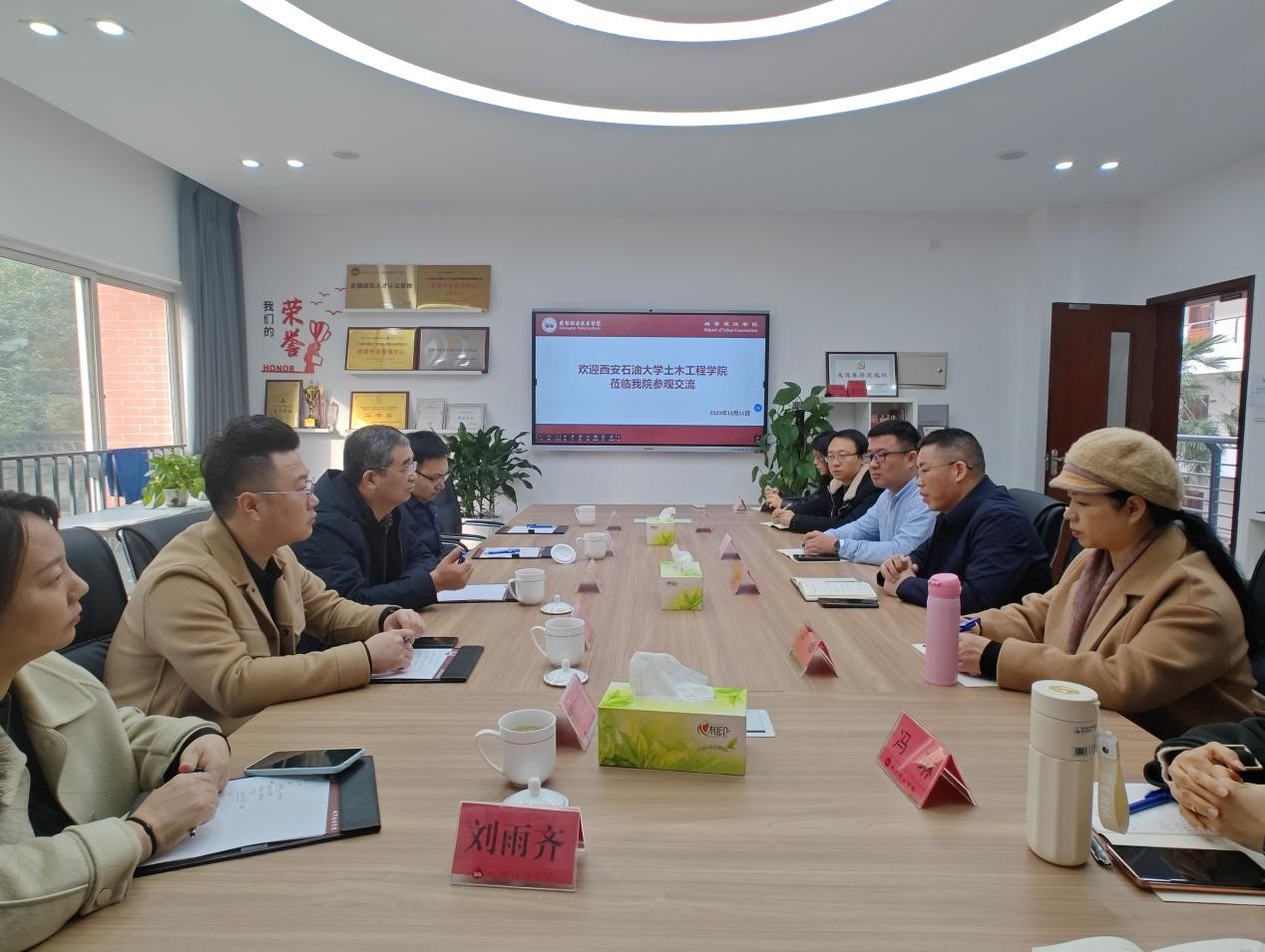 12月11目上午,应广联达科技股份有限公司邀请,土木工程学院副院长李俊亭一行赴成都职业技术学院城市建设学院及广联达新津智慧城市建设项目走访调研。土木工程学院实验教学中心、办公室负责人,广联达西安公司咨询经理姚沛、西南公司新津智慧城市项目负责人王伟、胡江华,业务咨询经理刘雨齐陪同走访。成都职业技术学院城市建设学院党总支副书记(主持工作)、副院长(主持工作)李育枢、校企合作办公室主任周元、智慧建造专业群内各专业负责人参加座谈。