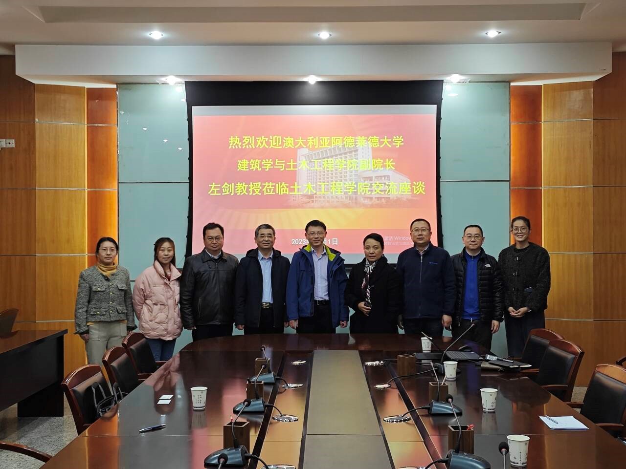 12月1日上午,澳大利亚阿德莱德大学建筑学与土木工程学院副院长左剑教授应邀来访土木工程学院开展国际化合作及科研学术交流,长安大学经济管理学院张静晓教授陪同来访。bat365中文官方网站国际交流与合作处处长闫苏莉、土木工程学院党委书记陈涛、副院长李俊亭、系主任、工程管理系全体教师参会。座谈会在雁塔校区第四会议室召开,会议由土木工程学院副院长李俊亭主持。