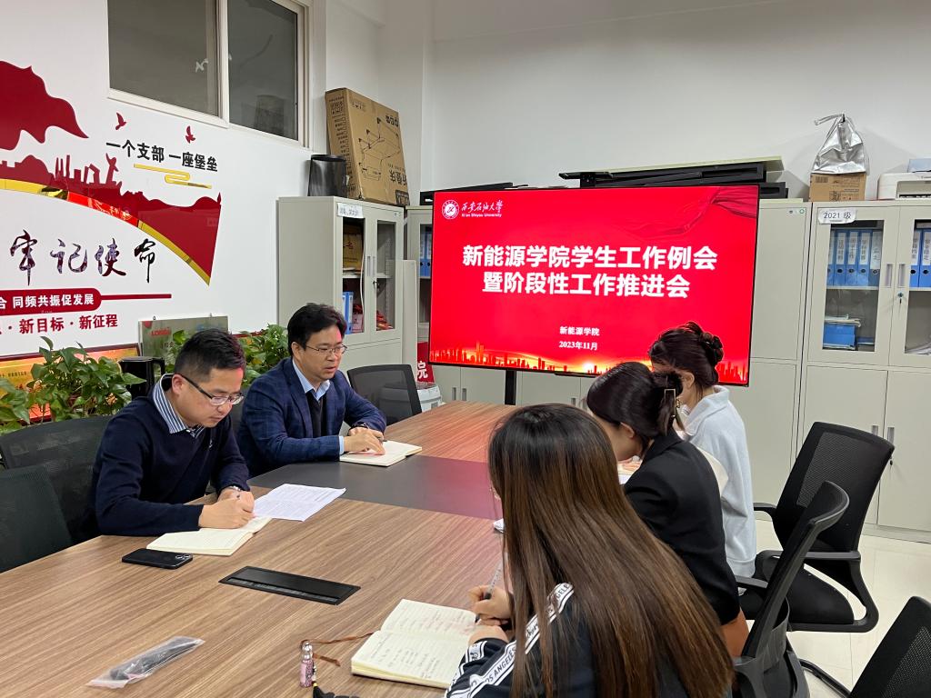 为了进一步优化学生教育管理服务工作,推动学院学风建设迈向新台阶,11月29日晚,新能源学院学生工作例会暨阶段性工作推进会在天工楼223室召开,会议由学院党委书记宋海洋主持,各年级辅导员参会。