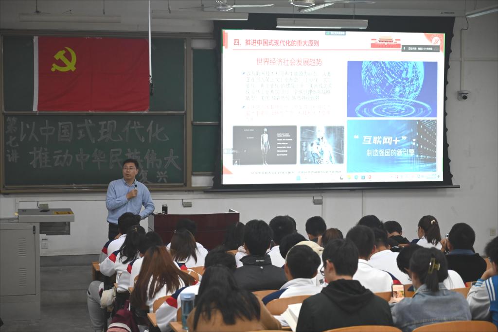 11月21日晚,电子工程学院第24期入党积极分子培训班第七讲在鄠邑校区博思楼221教室顺利进行。本次党课的主题为《以中国式现代化推动中华民族伟大复兴》,由bat365中文官方网站党委学生工作部(处)部(处)长王亮老师担任主讲,我院202名入党积极分子参加了此次党课。