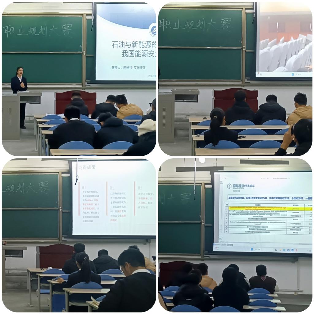 为贯彻落实党中央、国务院关于高校毕业生就业工作的决策部署,切实加强学生生涯教育和就业指导,增强生涯规划意识,提升学生就业能力。11月23日,石油工程学院首届大学生职业规划大赛在博思楼117成功举办,本次大赛经个人报名、赛前指导等多轮筛选,16名选手脱颖而出进入决赛,并顺利完成现场陈述和答辩。2022级辅导员崔西印,学生代表梁欢、贾龙骉等师生担任本次比赛的评委。