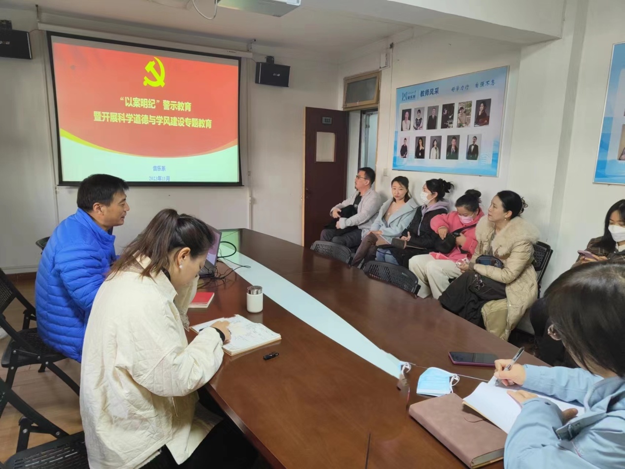 11月23日上午,音乐系在雁塔校区音乐楼会议室召开“以案明纪”警示教育和学术道德与科研诚信教育大会。音乐系党政领导和全体教职工参加会议。会议由党总支书记孟开元主持。