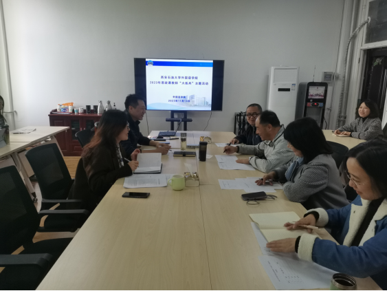 为认真贯彻落实习近平总书记关于学校思想政治理论课的重要论述,按照《中共陕西省委办公厅关于印发〈全国“大思政课”综合改革试验区陕西省实施方案〉的通知》(陕办字〔2023〕54号)精神,加强高素质、创新型教师队伍建设,深化课程育人质量改革,外国语学院于11月14日下午在华油能源楼727举办了课程思政“大练兵”讲课比赛,学院党委书记田虹霞、副院长陈武、大学外语教学一部主任李雪梅、大学外语教学二部主任彭健、英语系主任钟泽波、翻译系副主任秦艳霞参加了本次主题活动。本次比赛由陈武副院长主持。