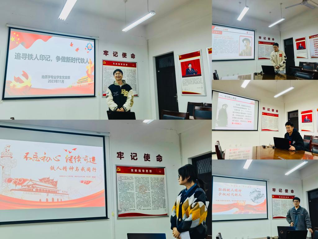 地质学专业学生党支部副书记冯凯力以《追寻铁人印记,争做新时代铁人》为题目,从铁人的故事、铁人精神的内涵、新时代地质铁人——冯增昭以及对照铁人精神,争做新时代铁人四个方面展开宣讲,详细讲解了作为一名学生党员应该如何传承和弘扬铁人精神,并鼓励同学们要将铁人精神作为推动自己前进发展的强大精神动力。