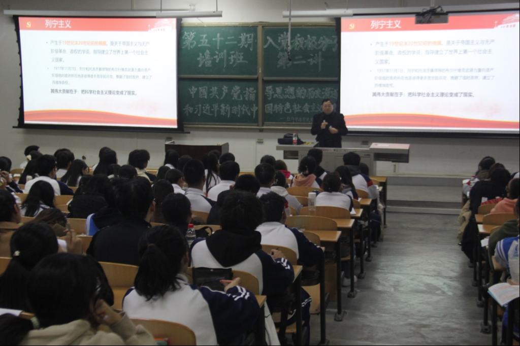 为进一步引导入党积极分子深入了解中国共产党的指导思想,增强入党积极分子们对党的路线、方针、政策的认识,提升党性修养和政治觉悟,11月7日,经济管理学院第五十二期入党积极分子培训班第二讲于鄠邑校区博览楼239教室开讲,本次党课由地球科学与工程学院党委书记马行天教授主讲,第五十二期入党积极分子参加。
