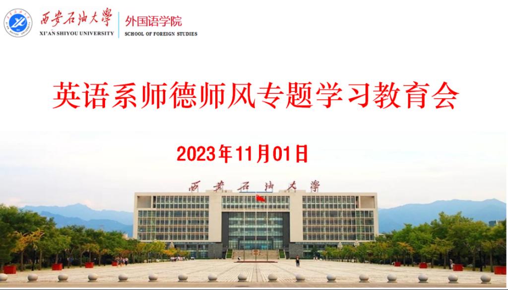 2023年11月1日下午,外国语学院英语系党支部于雁塔校区华油能源楼727室召开了第四季度的专题学习会议,会议由英语系党支部书记王文峰主持。