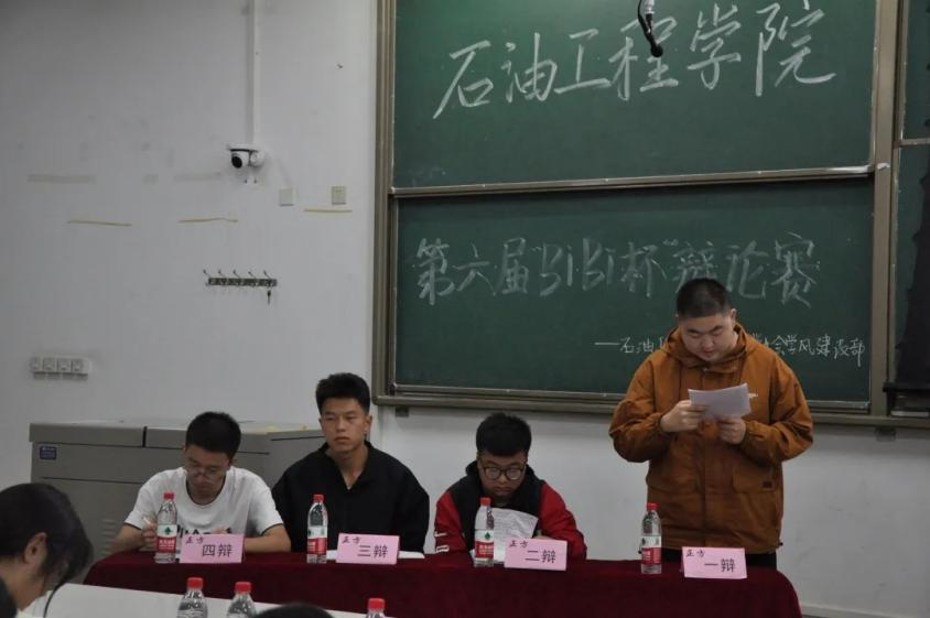 唇枪舌战,辩赛场硝烟;口若悬河,理是非曲直。为提升学生思辨能力和创造力,丰富大学生课外生活,激发学生自主思考的能力,石油工程学院于10月15日晚7点在鄠邑校区博思楼103教室举行以“弘扬铁人精神,锤炼过硬本领”为主题的第六届“BiBi杯”辩论赛。学院学生工作办公室主任黄景鹏,团委、学生会骨干成员及部分2022级学生参加。活动评委由校辩论队教练胡泽彪、李嘉浩同学及学校智者杯、白马杯最佳辩手王思雨同学担任。