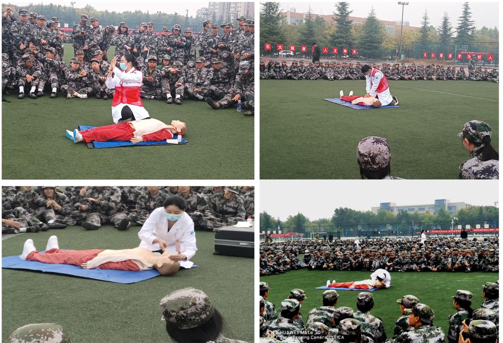本次模拟演练活动分为心肺复苏术(CPR)及自动体外除颤仪(AED)使用两个环节。活动现场,在鄠邑区红十字会工作人员理论知识讲解和引导下,校医院12名医护人员以连为单位现场通过模拟观察险情、问询、呼救、处理口腔和气道、胸部按压、人工呼吸等对“模拟人”进行了心肺复苏操作全过程演示。