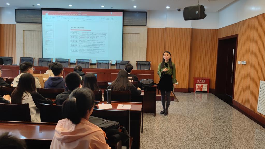 2021级研究生第三党支部书记毛璀璨同志为各位党务干部从党支部建设工作、党员的教育与管理、“三会一课”的组织与开展等三个方面进行详细讲解,并现场与各支部干部进行了经验交流。