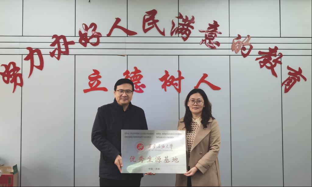 随后,双方就新高考改革、选课科目设置、专家讲座进校园等方面进行了充分交流。双方均表示,要以共建优秀生源基地为契机,加强交流合作、资源共享,努力培养更多具有扎实理论基础和创新实践能力的优质人才。会上,田虹霞代表学校与城固县第一中学签署了《bat365中文官方网站优秀生源基地建设协议》,并授予“优秀生源基地”牌匾。