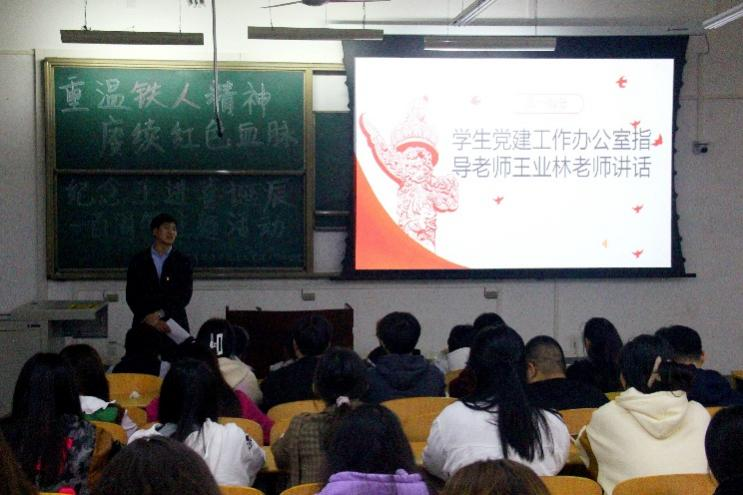 活动中,学生党建工作办公室指导老师王业林讲述了大庆石油会战时期的艰苦历程,介绍了铁人的生平事迹,生动的阐释了铁人精神的丰富内涵,并以此激励同学们在之后的学习工作中努力拼搏,争做新时代“铁人”。