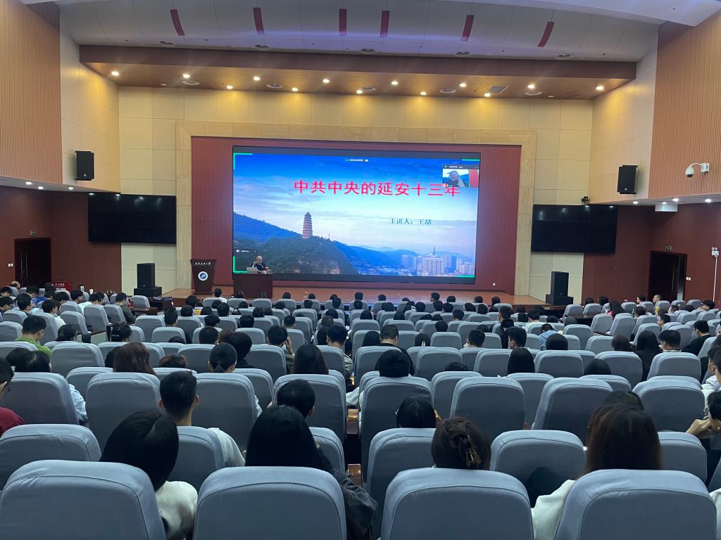 9月23日上午,研究生工作部邀请bat365人文学院特聘教授、天津传媒学院特聘教授、天津延安精神研究会副秘书长王喆来校,在鄠邑校区弘石报告厅,为2023级研究生做了题为“中共中央的延安十三年”专题讲座。校党委副书记张木、教师工作部部长武晓朦及全体2023级研究生听取了讲座。讲座由研究生工作部部长李强主持。