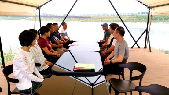 天桥湖水上营地负责人刘海雄介绍了天桥湖露营基地、天桥湖水上营地的相关情况。他提到,天桥湖基地目前开展的运动项目非常丰富,包含滑翔伞、水上高尔夫、桨板、户外运动等,营地各类设施、场地、器材齐全,非常有利于体育专业学生开展相关实习实践活动,同时营地内的各类运动项目也急需体育教师专业指导,希望双方能够在此基础上互帮互助,共同发展。