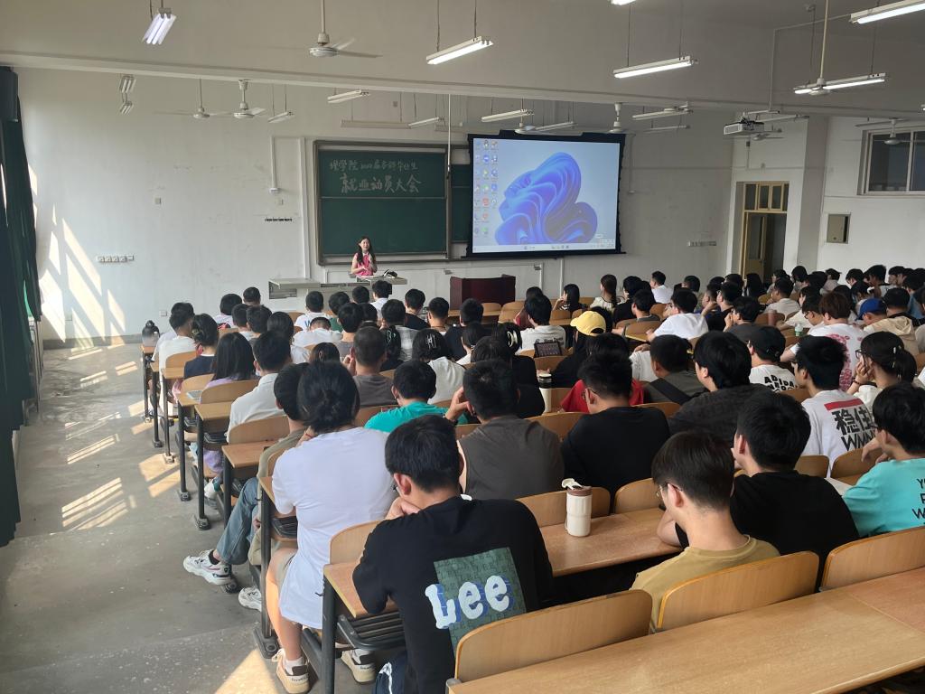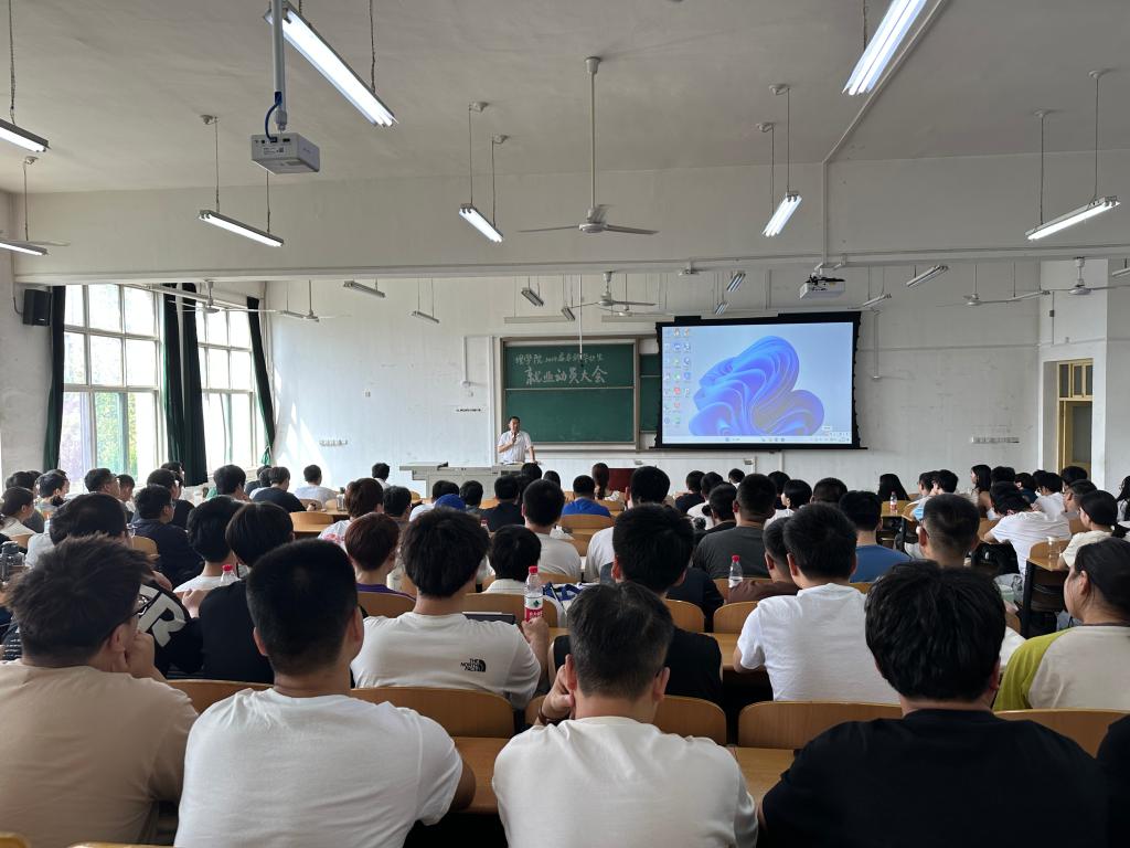 9月7日上午,理学院在鄠邑校区博思楼223教室召开2024届本科毕业生就业动员大会,对本科生开展就业考研再动员、再教育,鼓舞同学们的士气。党委副书记马小刚参会,2024届毕业班辅导员林晔主讲,全体2024届毕业生参加。