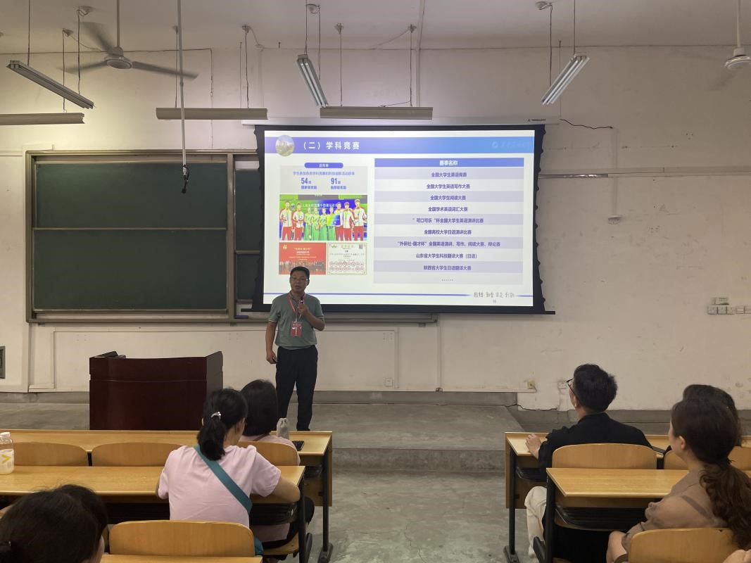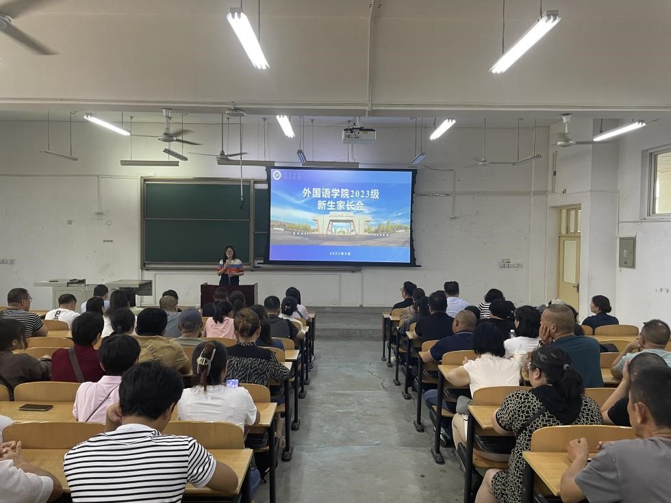为加强家校联动,提升育人实效,9月6日上午,外国语学院在鄠邑校区B区教学楼112教室召开2023级本科生新生家长见面会。学院党委书记田虹霞、副书记王业青、副院长陈武及2023级本科新生家长参加会议。会议由2023级辅导员陶李主持。