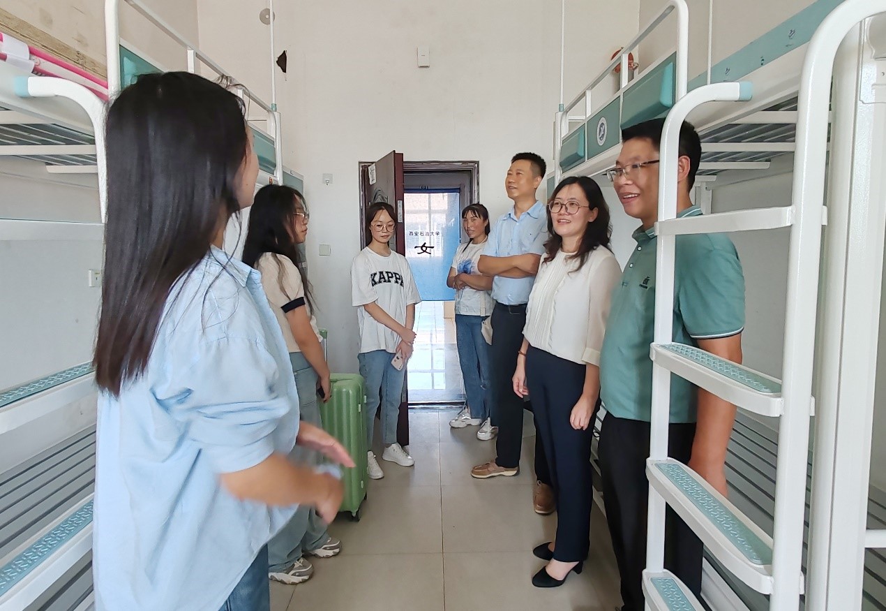在迎新现场,学院领导们详细了解新生报到情况,慰问现场工作人员和学生志愿者。在走访宿舍过程中,分别与新生及家长进行亲切交流,了解同学们来校后的感受和对学校的印象,以及每位新生的名字、家乡籍贯、专业等信息,详细询问同学们在衣、食、住、行等方面的问题,听取新生对学院迎新工作的感受。叮嘱同学们要尽快调整好学习生活节奏,完成身份、角色转变,养成良好生活习惯,以积极良好的状态迎接大学学习生活。鼓励同学们提前做好大学期间的学习规划,勇于尝试新事物,积极参加各种活动和比赛,脚踏实地,为将来的发展打下扎实的基础。