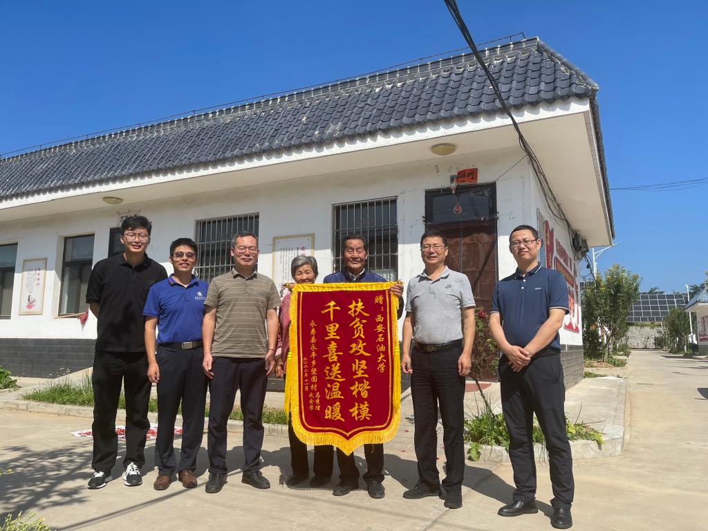 马勇一行还走访慰问了马秀理和肖军民两户结对帮扶家庭,并为他们送上油、米、鸡蛋等慰问品,并详细了解了生活情况、身体情况和收入情况,嘱咐他们保重身体。两户家庭表示,近年来在党的各项政策关心和支持下,在bat365中文官方网站石油工程学院的精心关怀帮扶下,住房、收入、生活等方面有了明显的改善,其中马秀理老人还将一面印有“脱贫攻坚楷模,千里喜送温暖”的锦旗送给马勇一行,对学校和学院在脱贫攻坚和乡村振兴工作中给予的关心和帮扶表示由衷的感谢。