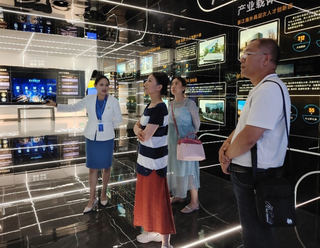 廖敏书记一行在走访用人企业的同时,还前往杭州未来科技城人才和金融服务中心,与中心主任冯敏敏沟通交流了学校的专业设置、人才培养等信息;人才中心王科长陪同廖书记一行参观了杭州未来科技城海创园城市展馆、浙江海外高层次人才创新园,创新园毛芳毅主任介绍了杭州城西科创大走廊高层次人才综合服务中心主要业务范围,详细介绍了中心“我负责阳关雨露,你负责茁壮成长”理念下的人才引进、创业保障等。双方就进一步开展人才引进和毕业生就业合作进行了深入、有益的沟通。