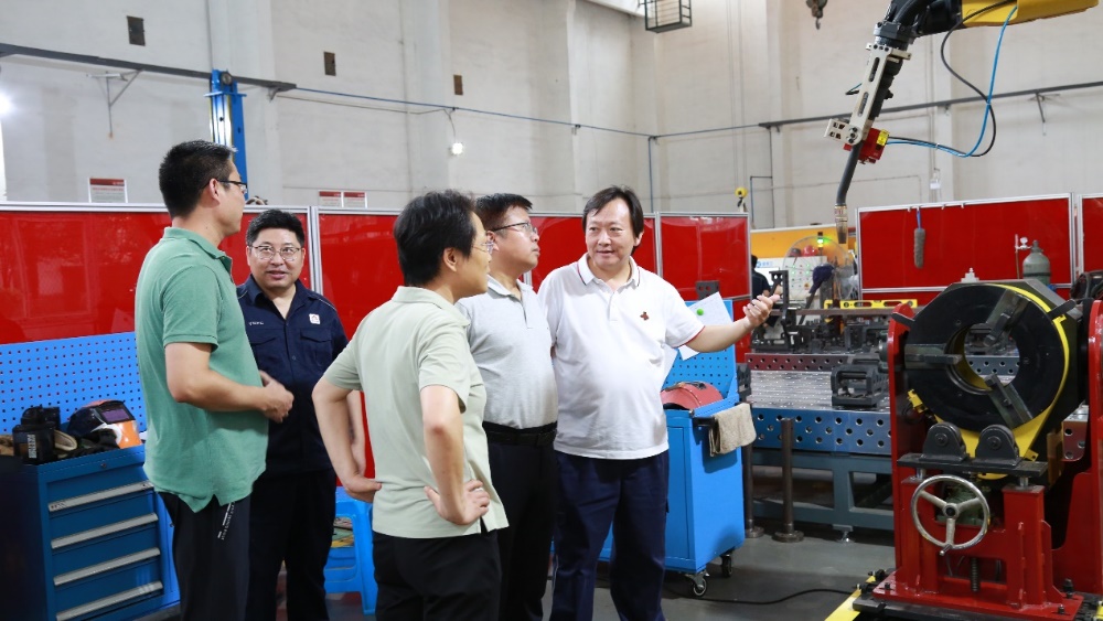 座谈会后,张骁勇院长一行参观考察了陕西延长石油金石钻采设备有限公司生产车间。郑向勇总经理就公司主要产品、焊接自动化装备和焊接接头质量自动评级设备进行了详细介绍,双方就能源装备智能制造方面开展了深入交流。