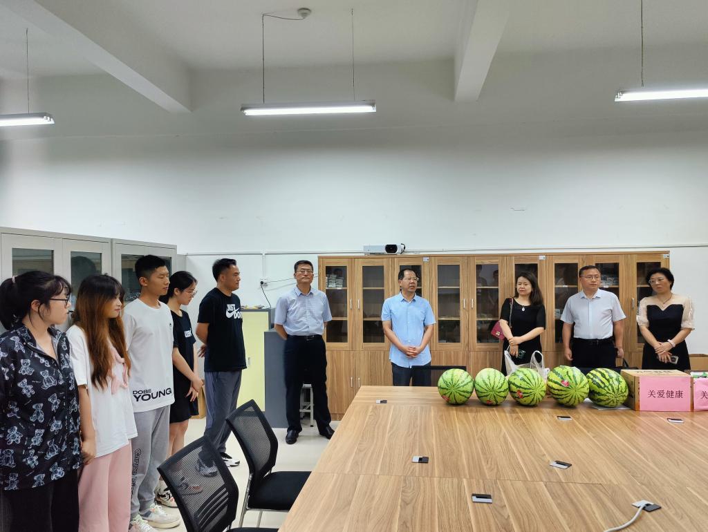 院党委书记何铖代表学院对同学们暑期留校学生坚持备考表示肯定和鼓励。何铖表示,暑期是备考的关键时期,要全力以赴学习知识,他鼓励学生既然选择考研这条路,就要坚持到底,不能动摇;备考同时要做好信息搜集工作,积极主动向学长学姐请教经验。学院非常关心留校学生的在校状况,遇到困难或有相关诉求要及时向辅导员老师反馈,学院会全力提供必要帮助与服务。院长仵杰告诉同学们要珍惜时光,明确目标,保持良好的作息规律和学习习惯,并详细询问了同学们留校期间的学习和生活情况,鼓励大家在暑期合理安排学习生活,尽可能地充实自己,把学习抓好,把身体锻炼好。并预祝所有同学在2023年考研中取得圆满成功。