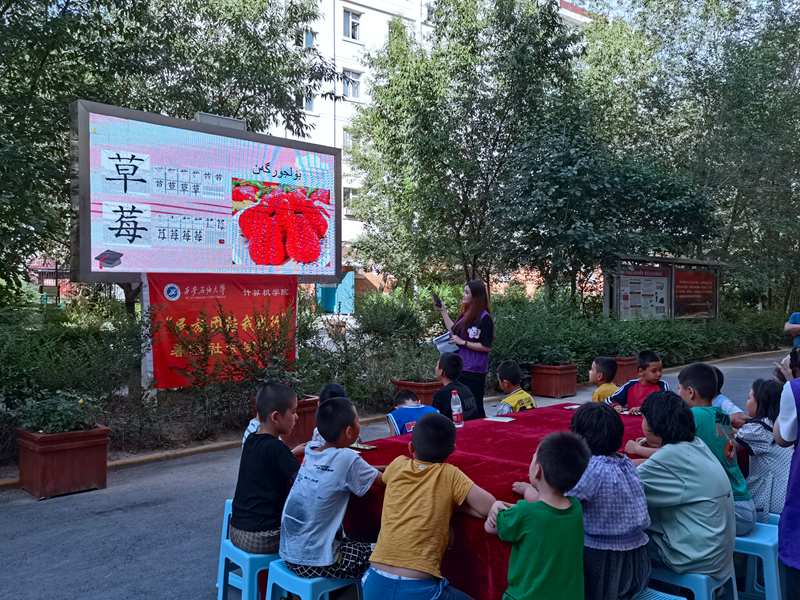 孩子们兴奋的回答问题,主动参与游戏,认真观看教学PPT,郑重的写下每一个汉字。在他们稚嫩的脸展示出的不仅是他们愉悦的心情更是团队对于此次活动的精心准备,以及社区干部对于此次活动的全力支持。在学习普通话的游戏中,孩子们在队员的鼓励下从一开始的羞涩到有力大声的回答出正确答案,“我获得了许多宝贵的经验和体会。我认识到普通话对他们的重要性,同时也深刻体会到了自己的责任和使命。”不只是社区的孩子们有了收获,团队的队员同样也有所感悟。