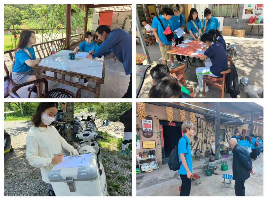 实践调研组同学通过发放调查问卷、采访五好家庭以及村民游客等方式进行实践活动。