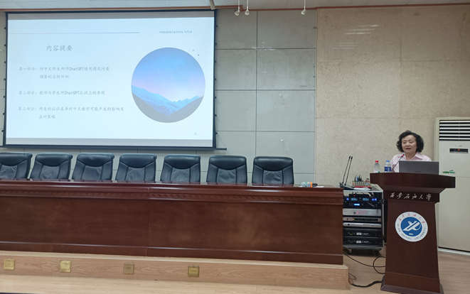 2023年7月1日上午,美国圣路易斯华盛顿大学东亚系梁霞教授在雁塔校区第三会议室,为全校师生做了“CHATGPT使用情况调查研究——教师与学生的认识差异及其对中文教学的启示”讲座,并特邀陕西师范大学社科处处长柯西钢教授一同前来座谈,人文学院副院长方松林主持。