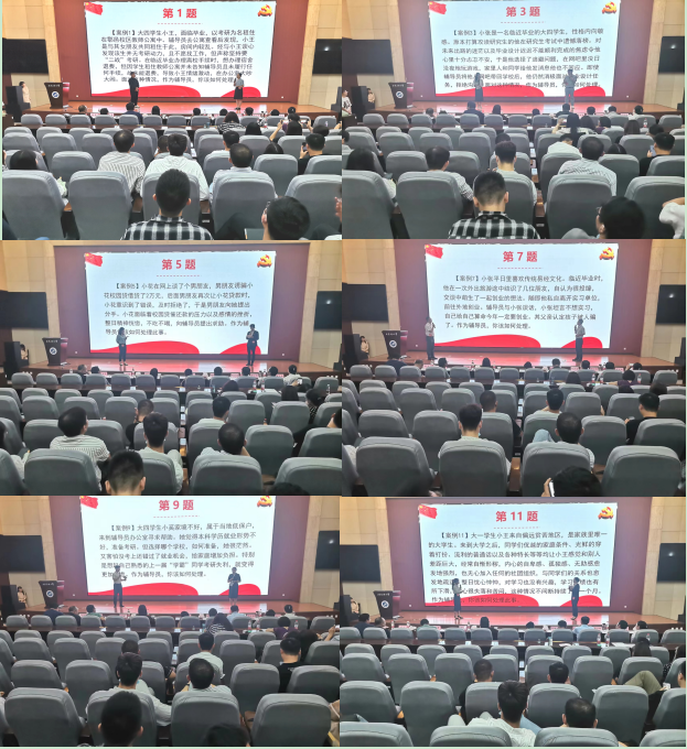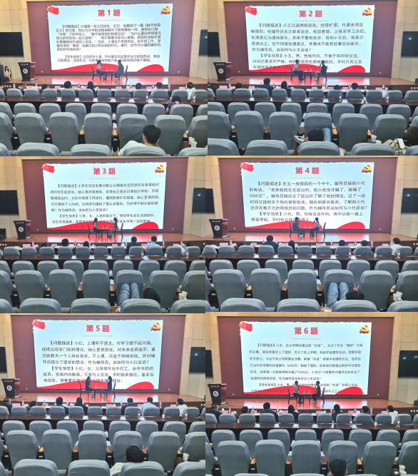6月30日,于鄠邑校区弘石报告厅开展案例研讨和谈心谈话环节。学生工作部部长王亮、学生心理成长指导中心主任肖琼、校团委书记何国强,部分院系学生工作负责人担任大赛评委,选基础知识测试得分前12名选手进入案例研讨环节,选基础知识测试得分×20%+案例研讨得分×40%,综合得分前6名选手进入谈心谈话环节,全体学工干部现场观摩比赛。