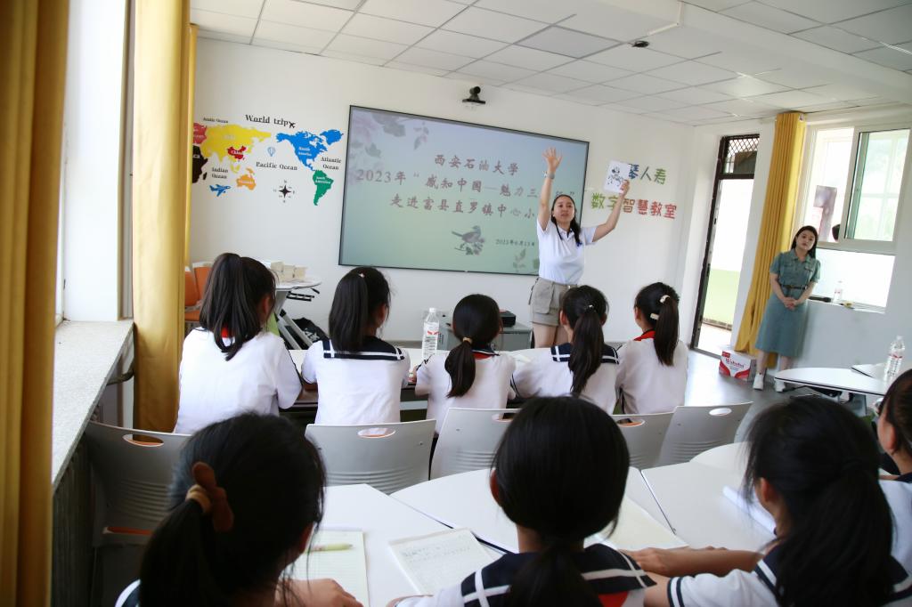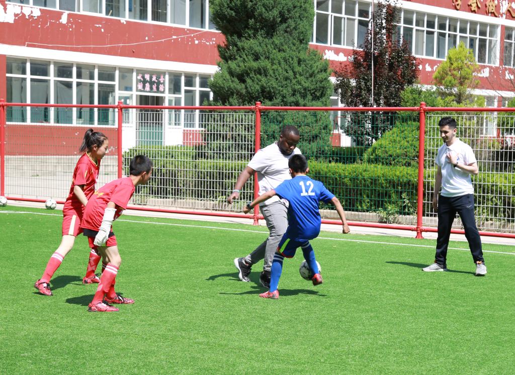 在直罗小学,留学生们为小学生们带来了有趣生动的英语口语课。实践教学活动是“感知中国”活动重要组成部分,在互动课堂上,小学生们与来自不同国家的留学生互动交流,来自马来西亚的咏翰分别用中文、英文、马来西亚语给小学生们教了生日祝福歌,来自哈萨克斯坦的小云用图画、猜谜游戏为小学生们上了一堂生动活泼的英语课。有趣的英语课堂激发了小学生学习英语的热情和浓厚的兴趣,课堂气氛热烈,同学们发言踊跃,一节课下来小学生们意犹未尽。英语课堂外,是以“传播快乐足球”为主题的足球互动活动,留学生与小学生们开展了一场足球友谊赛。场上,参赛队员们齐心协力,奋勇拼搏。带球、护球、传球、射球,动作娴熟,拼劲十足。就这样,初次来到直罗小学的留学生们感受到了当地的风土人情,并对接下来与孩子们的相遇充满了期待。活动中,bat365专程为直罗小学带去了50本捐赠图书和5个崭新足球。