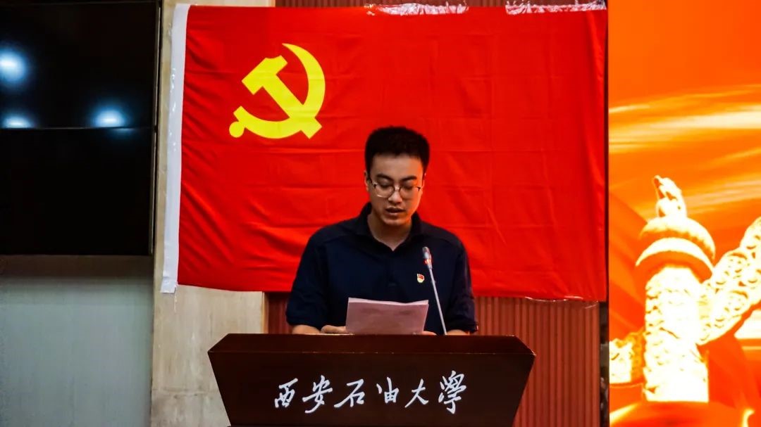 预备党员代表王班骞同志分享入党初心,号召学生党员同志们做一个心中有梦、眼里有光的奋斗者,在风华正茂的年纪书写青春的新篇章,为实现中华民族的伟大复兴而努力奋斗。