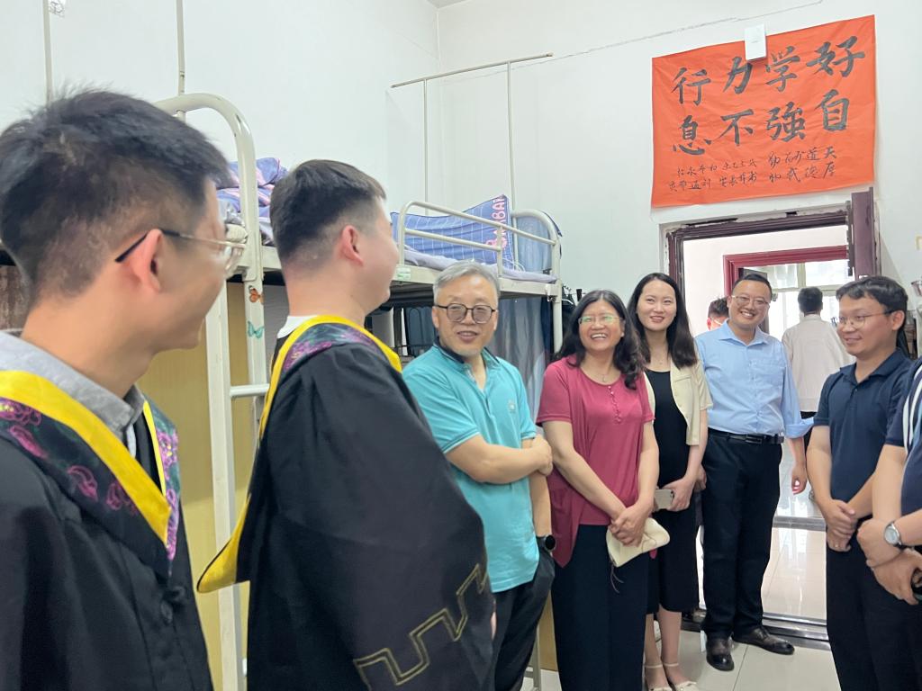 在2023届毕业生即将离校之际,6月13日上午,化学化工学院党委书记司马文龙、院长王文珍、党委副书记祁帆一行深入学生宿舍,看望慰问即将离校的学院2023届毕业生,与同学们依依话别并送上深切关怀和美好祝愿。