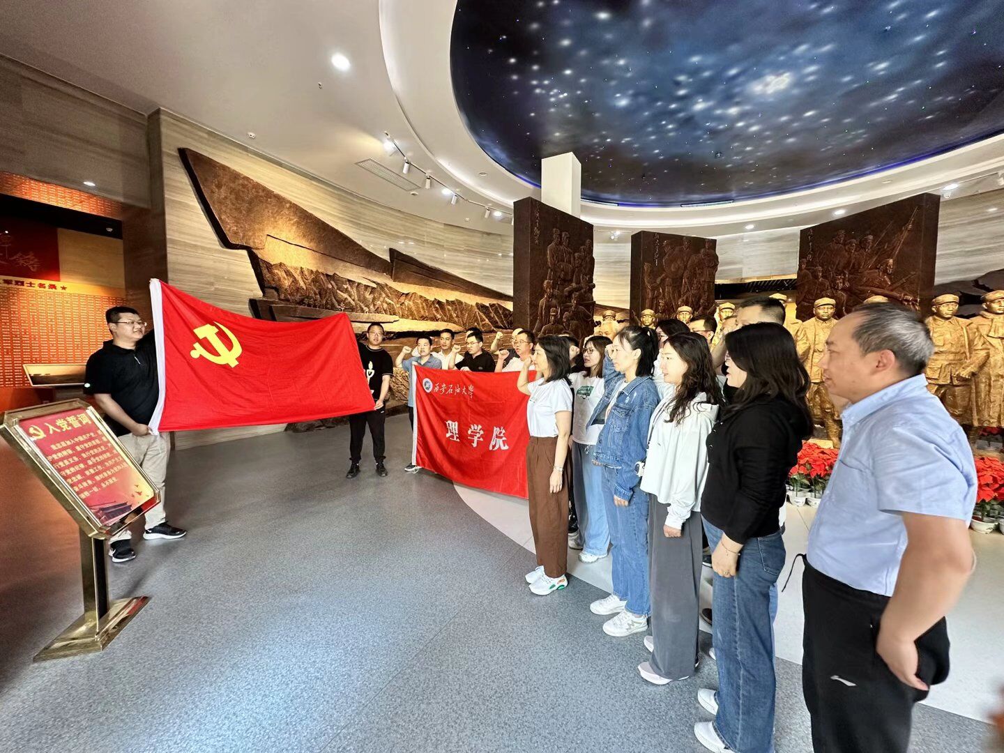 在东征会议旧址,大家认真聆听讲解员讲述东征会议的背景、内容,领悟东征精神和伟大意义。大家分别参观了东征会议室及毛泽东、周恩来、聂荣臻等同志的旧居。在一幅幅历史照片和实物前,同志们认真驻足观看,无不被革命前辈的英勇事迹所感动。通过现场教育,全体人员深切感受到了革命先辈舍生忘死、矢志不渝的崇高精神,自觉对照自己和先辈在党性上的差距,更加坚定了理想信念,进一步激发了干事创业的热情。参观现场,理学院党委书记廖敏带领全体教工党员重温入党誓词。