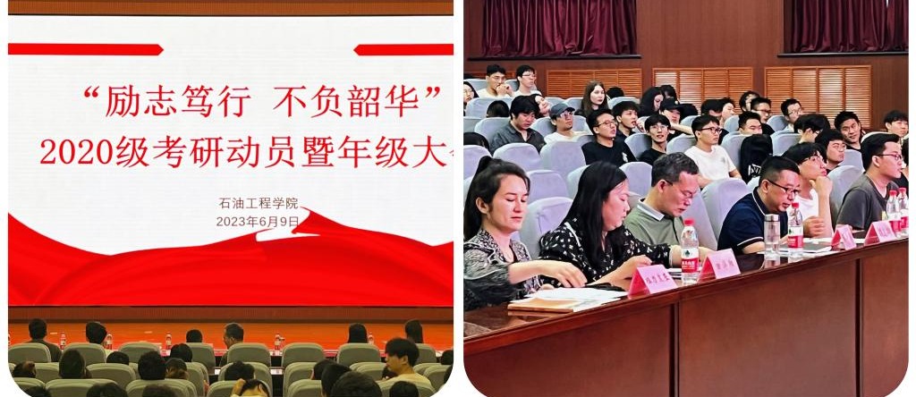 为进一步帮助石油工程学院学子解析考研形势、优化考研择校、了解专业前沿动态,提高考研的积极性,助力学生更好地进行考研复习规划,6月9日,石油工程学院召开“励志笃行 不负韶华”2020级考研动员大会暨年级大会。学院党委副书记张建高、副院长刘志坤、学生工作办公室主任黄景鹏、硕士生导师田洋阳,2020级辅导员祖力皮亚和2019级学生代表出席本次会议,2020级全体学生参加本次大会,会议由学生工作办公室主任黄景鹏主持。