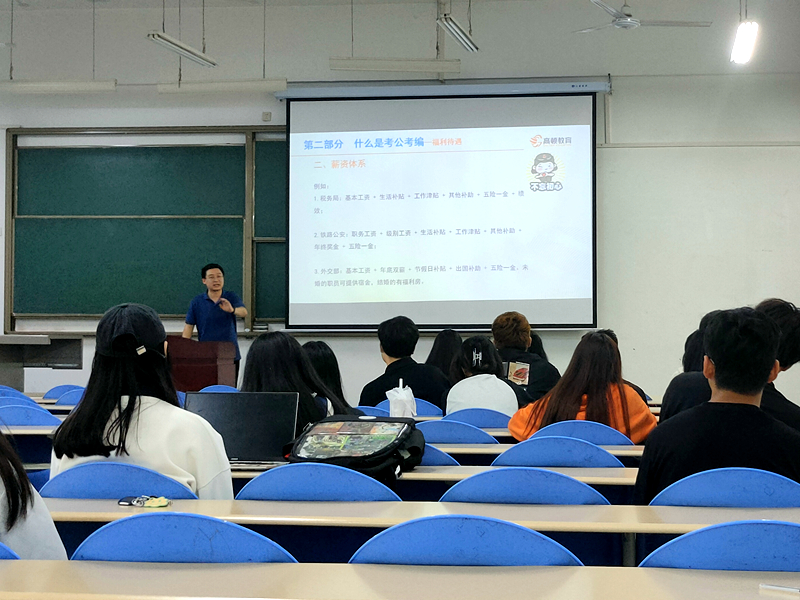 张彬从考试内容、考试难度、考试形式、备考方式及时间安排、面试技巧等方面向参会学生就国家公务员考试和陕西省公务员考试进行了详细解读,使同学们对公务员考试有了更深层次的认知,从而能更有针对性的进行备考。