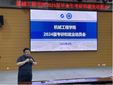 为进一步推进2024届毕业生就业工作,帮助学生清晰地判断就业趋势、建立良好的就业观念,系统合理地规划考研复习及应试过程,6月9日中午,机械工程学院在鄠邑校区崇文楼118报告厅召开2024届毕业生就业和考研动员会,学院党委副书记刘冰、副院长崔璐分别作就业和考研形势分析及动员,2020级全体学生参会。动员会由2020级辅导员马舒宇主持。