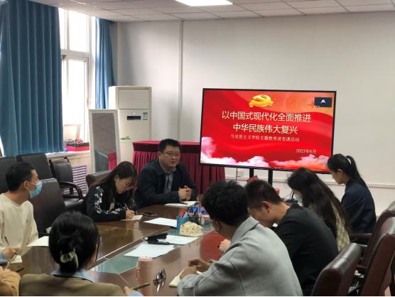 为深入学习贯彻习近平新时代中国特色社会主义思想,深刻学习领会党的二十大精神,用党的创新理论统一思想、凝聚共识、提振精神、激发干劲,激励广大青年时刻以历史主动精神涵养建设中国式现代化的责任担当,进一步推进主题教育走深走实,6月5日上午,马克思主义学院院长张海涛教授在雁塔校区华油能源楼818会议室为研究生第一党支部全体党员讲授了题为《以中国式现代化全面推进中华民族伟大复兴》的专题党课,党课由辅导员童玲主持。