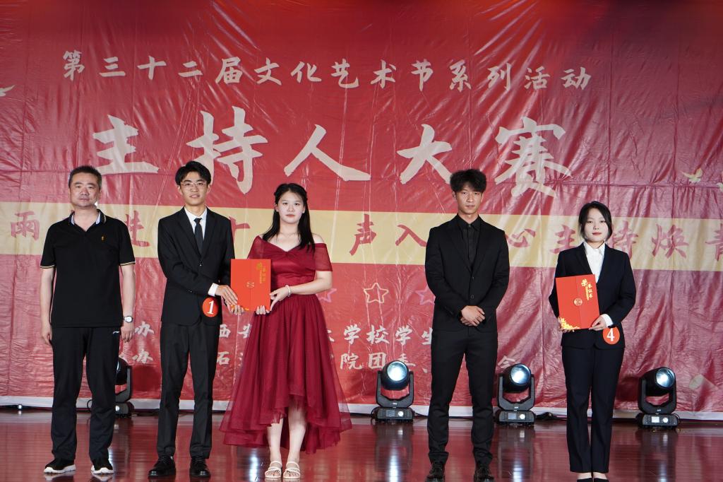 本次大赛历经初赛、预赛、复赛三个环节,最终有九支参赛队伍进入决赛。决赛中,参赛选手们以学习党的二十大精神为主题,围绕民生实事,通过访谈、新闻、演讲等形式,向现场的嘉宾与观众展示了他们的主持风采。期间,附点八分音乐社、街舞协会、啦啦操协会、院学生会权益服务部先后为在场的同学送上精彩的表演,主持人与在场同学进行绕口令互动。